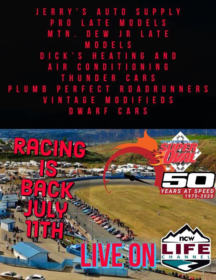 Racing is back July 11th at WVSO for North Valley Mechanical Night! At this time it’s still without fans unless we have a change between now and the race. Six Classes in action on July 11th with Jerry's Auto Supply Pro Late Models, Dick's Heating and Air Conditioning Thunder Cars, Plumb Perfect Roadrunners, Mtn Dew Jr Late Models, Dwarf Cars and NW Vintage Mods. The races will be broadcast on NCWLIFE for free again and we’re working on making it even better.