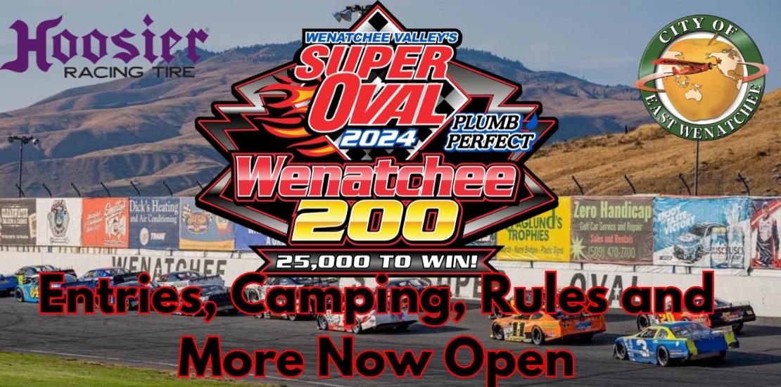 The Wenatchee 200 Presented by Plumb Perfect returns to the fastest 1/4 mile in the west Wenatchee Valley's Super Oval on Saturday June 1st. The event will post one of the richest 1/4 mile Super Late Model races in the country with $25,000 to the winner and $1,200 to start the event both increased from the 2023 event running. Drivers can now pre-enter the event and pit stalls will be selected by pre-entry order. There will be an open practice on Friday afternoon/evening followed by Kick-Off Party and Qualifying Draw.